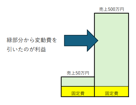 売上が小さいと固定費(黄色部分)の割合が増えるのは自然なこと